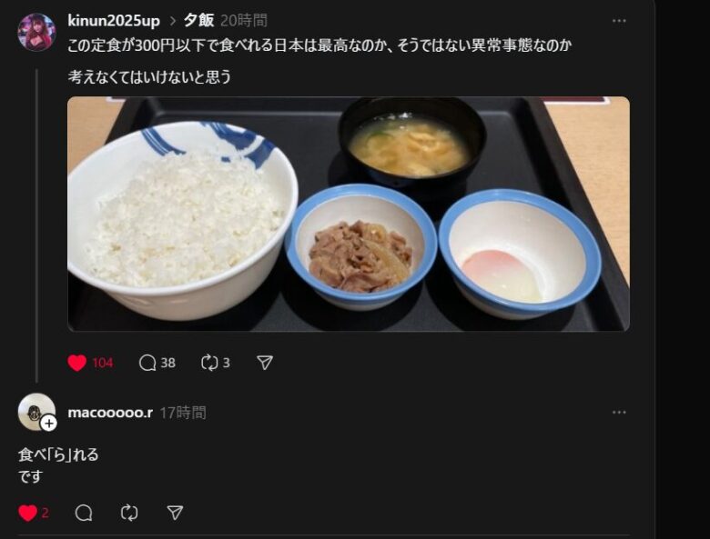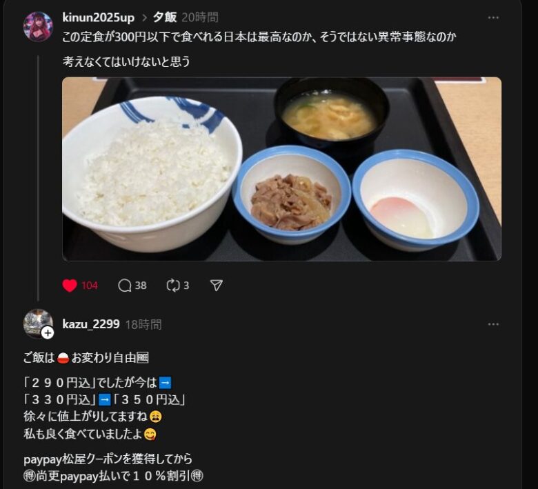 俺の知り合い。スレッズの民にお𠮟りをうける【松屋誤情報事件】 雑記 2026.01.11 なんか俺の知り合いがSNSのスレッズで誤情報を流してスレッズ民に怒られてました。 ドンマイっす 情報発信するときは誤記、誤情報に気をつけないとね