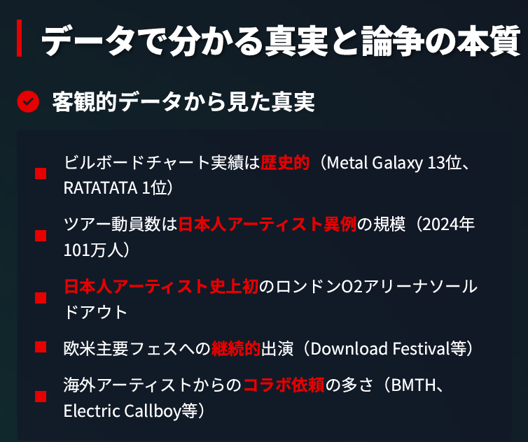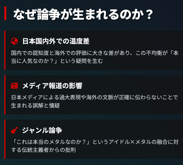 BABYMETALの海外人気に対する批判的な意見を、もう少し深掘りして検証してみましょう。