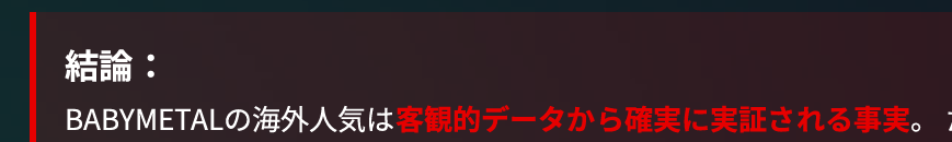 結論として、BABYMETALの海外人気は、決して「嘘」ではなく、本物であると言えるでしょう。